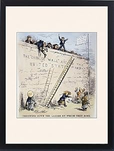Product Description : Size: 24 x18 Framed Print24 x18 Framed Print, Black Satin Frame Off-White Digital Mat. showing IMMIGRATION CARTOON. Throwing Down the Ladder by Which They Rose Earlier. IMMIGRATION CARTOON. Throwing Down the Ladder by Which They Rose Earlier immigrants, mostly Irish, want to prevent Chinese from entering the United Staes cartoon, 1870, by Thomas Nast. Chosen by Granger Art on Demand. 24 x18 wooden frame with digital mat and RA4 print. Finished back including brown